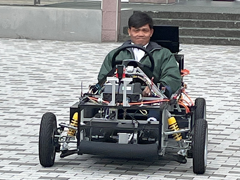 今回の訪問のメインである一関工業高等専門学校では、自動運転PIUS(Type Edge)を用いた自動運転の基礎実習を体験し、車両システム(操舵、制動、モータ)の制御やロボットと自動運転のクルマとの関係など、基本的な知識を習得されました。